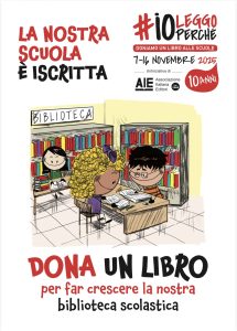 Il nostro Istituto ha aderito al progetto nazionale di promozione della lettura #Io leggo perché. Doniamo un libro alle scuole#, organizzata dall’Associazione Italiana editori, sostenuta dal Ministero per la Cultura- Direzione Generale biblioteche e Diritto d’autore e del Centro per il libro e la lettura, in collaborazione con il Ministero dell’istruzione. La finalità principale è quella di sensibilizzare docenti, genitori e soprattutto alunni a riflettere sul piacere e sul valore della lettura, come passione da condividere e far crescere. Tutti siamo chiamati ad acquistare un libro in Libreria e donarlo alle biblioteche scolastiche gemellate. Alla fine della raccolta gli Editori contribuiranno con un numero di libri pari alla donazione nazionale complessiva, fino a un massimo di 100.000 volumi, suddividendolo per le Scuole partecipanti. Dal 7 al 16 novembre 2025, nella libreria aderente, sarà possibile acquistare libri da donare alla scuola, che saranno ripartiti tra i vari ordini.