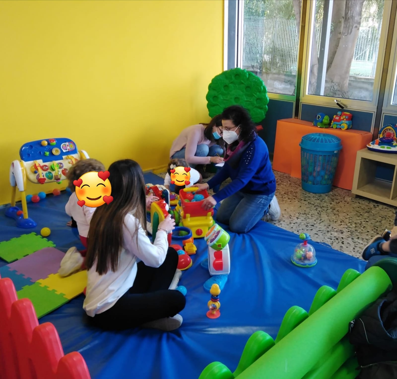 Dopo l’accoglienza ci si riunisce creando un cerchio per condividere un momento di ascolto attivo e partecipazione attraverso varie canzoncine e attività tra educatori, assistente e bambini.
